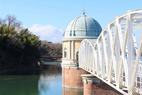 日本で一番美しいと言う多摩湖の取水塔の写真です。