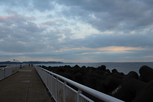 神奈川県藤沢市 江ノ島 湘南大堤防の景色の写真です。2016年7月23日撮影。